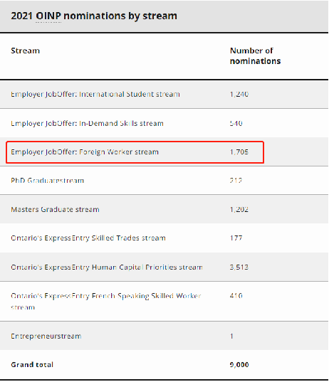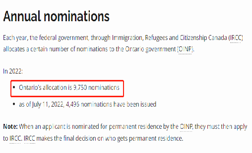 安大略省移民提名计划 ( OINP ) 收到联邦政府的 2022 年提名分配,全省2022年配额为9750个提名。