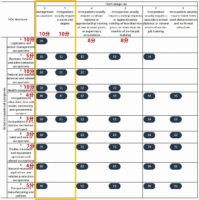 加拿大职业类别NOC评分分析: